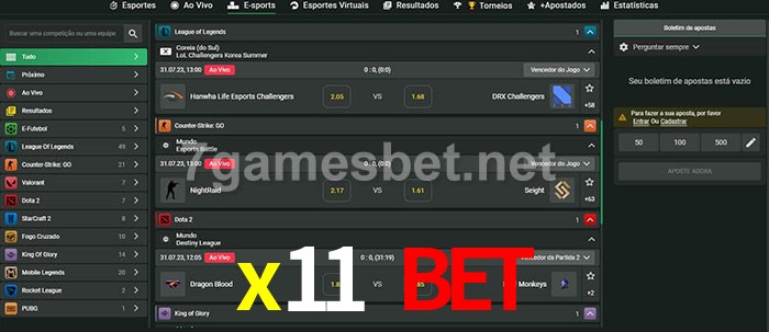 O x11 bet oferece uma grande seleção de opções de apostas em e-sports com probabilidades competitivas